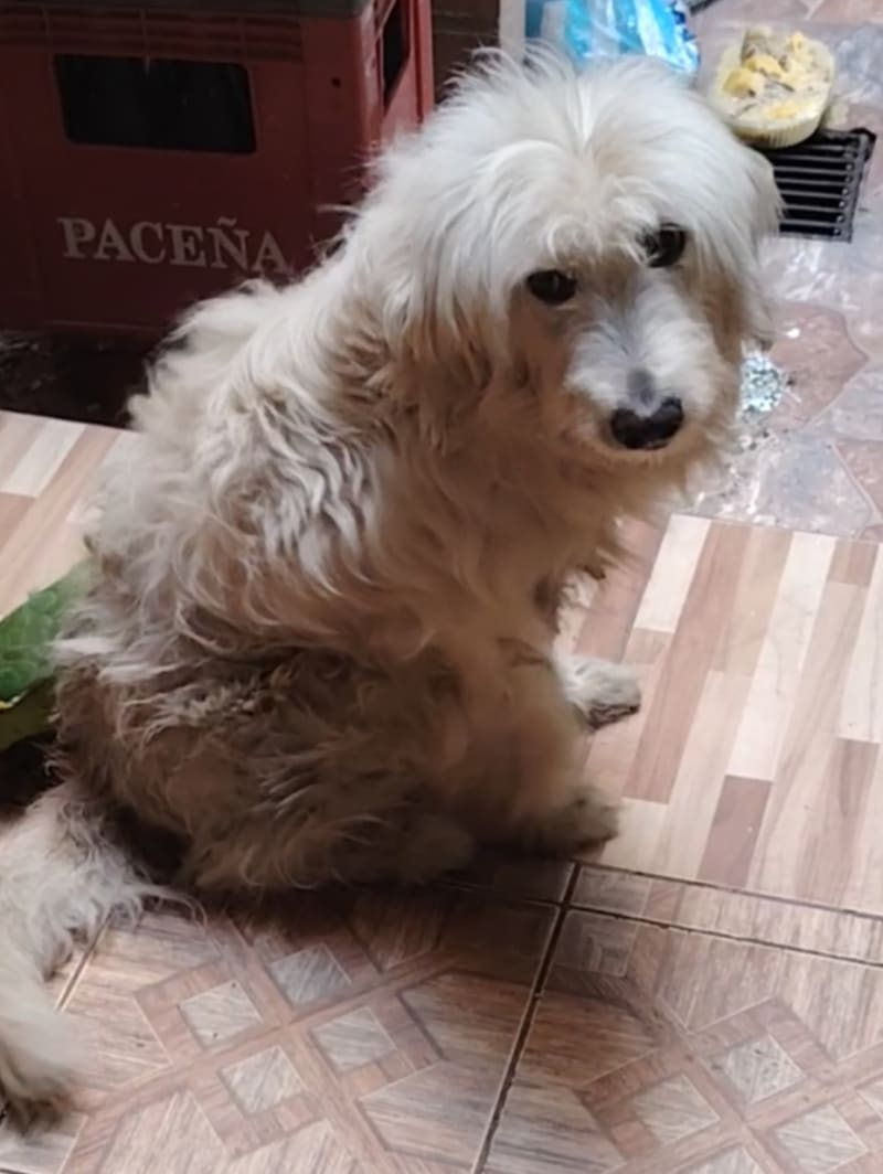 Lleva una alergia o mancha en la parte de su espaldita cerca la cola, Es viejito y mancito, Es chapita mediano Peludito Debe estar sufriendo mucho me avisan si saben algo por fabor.